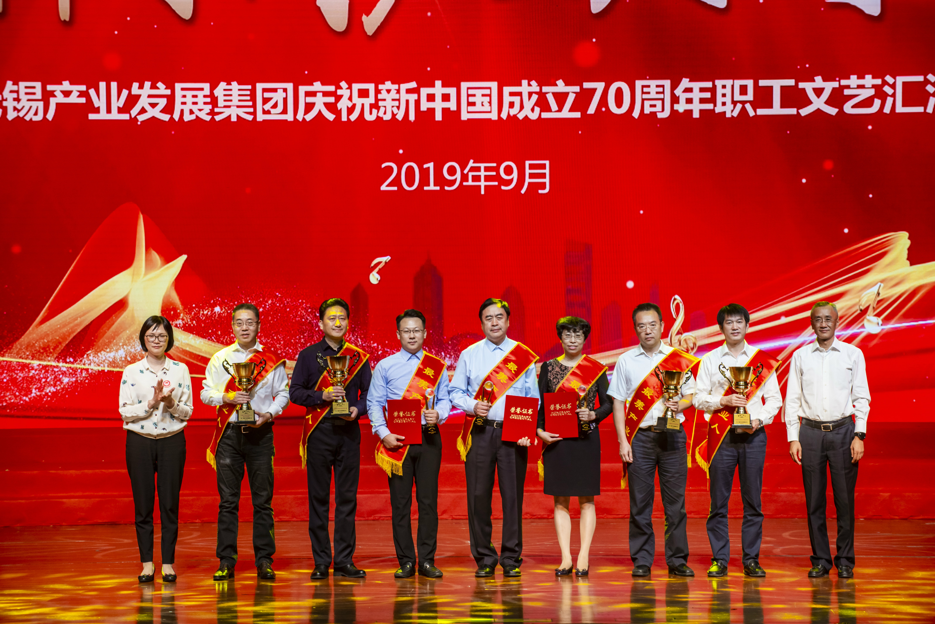 9月24日,“新時代產業人之歌”產業集團慶祝新中國成立70周年文藝匯演在無錫人民大會堂舉行。副市長高亞光出席活動并致辭,產業集團領導班子成員與應邀出席的市各有關部門嘉賓以及職工代表們一齊聯歡,熱烈慶祝祖國母親70周年華誕。