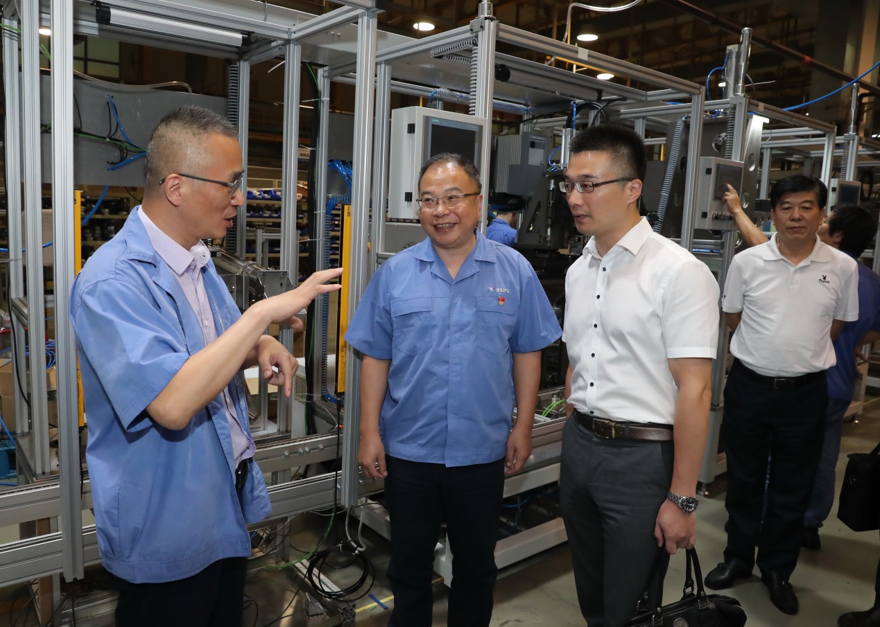 潘彬賓在調研中指出,威孚高科要在抓黨建促發展、實施供給側結構性改革、推進完全市場化經營機制建設等方面繼續發揮“國有企業轉型升級發展的典范”作用,凝聚全體職工力量,不斷打造市場競爭力,進一步探索和實踐中國特色現代國有企業制度建設,爭當引領無錫國企創新發展的榜樣。在智能裝備事業部現場,對威孚高科自主研制并具有核心Know-how的智能高效自動化裝配線表示高度肯定和贊許,給威孚員工和裝備研發團隊莫大的鼓舞。